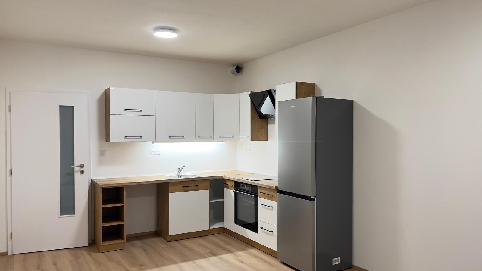 Byt se nabízí částečně zařízený – v místnosti je nová kuchyňská