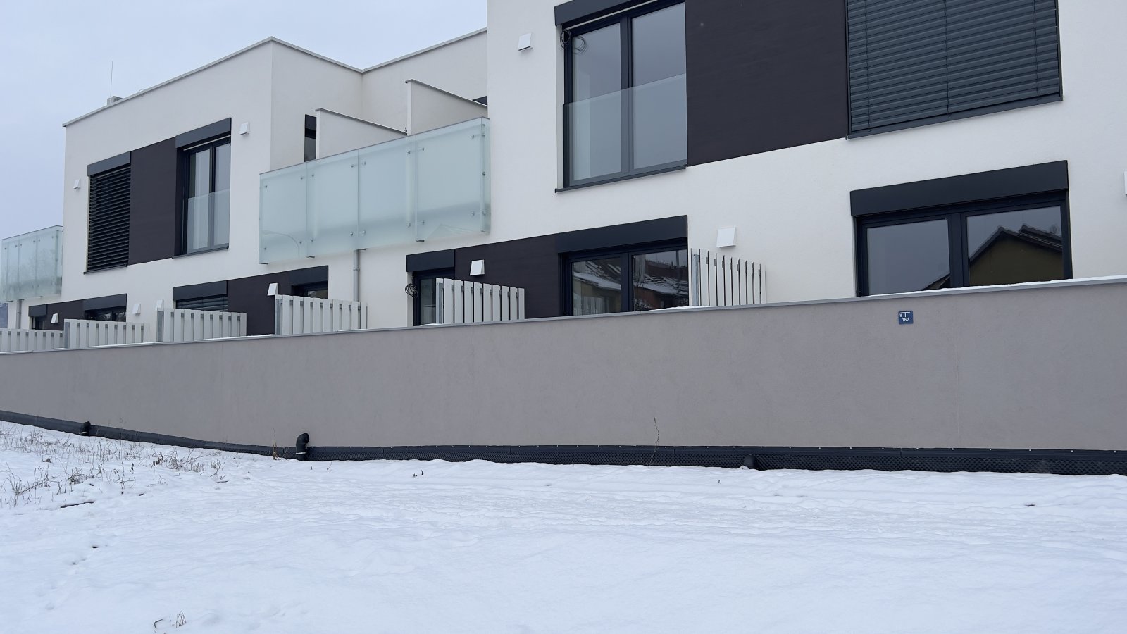 s elektrickým vrátným. V domě je kolárna.