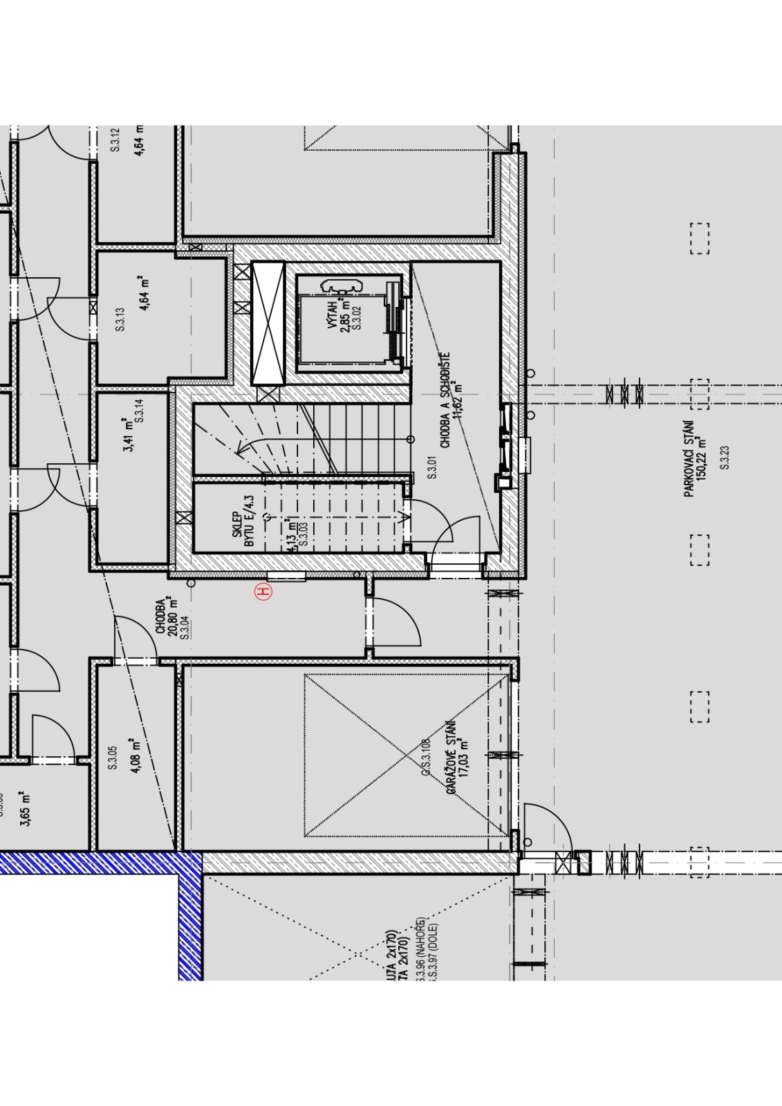 3. podzemním podlaží bytového domu na adrese Křepelčí 1098, Brno –